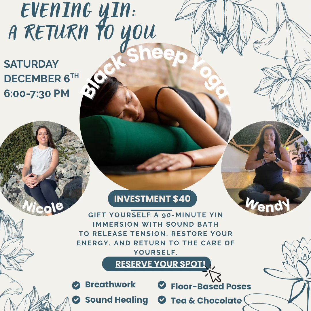 Join us for a 90-minute Yin immersion, let the gentle sounds of healing wash over you, and slow down for a little self-care with chocolate and tea as a sweet treat for yourself.